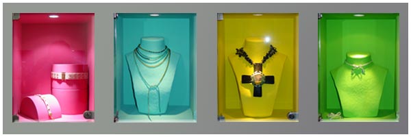 Ladengestaltung: Regelmässige farbliche Gestaltung der Ausstellungsfläche "M.Herbolzheimer" am Eppendorfer Baum.